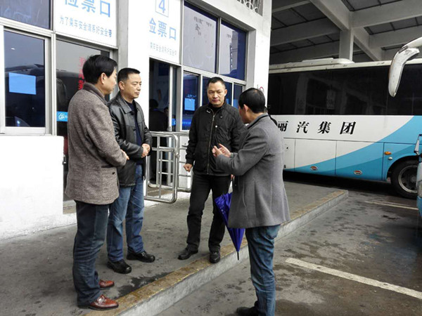 今天(1月25日)上午,市交通運(yùn)輸局副局長(zhǎng)葉麗東、副局長(zhǎng)、運(yùn)管局局長(zhǎng)蔣仲勝在客運(yùn)東站經(jīng)理江小華的陪同下到東站檢查春運(yùn)期間的安保工作 。