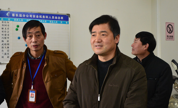 薛和有聽取東站和客長運(yùn)分公司負(fù)責(zé)人介紹春運(yùn)首日情況